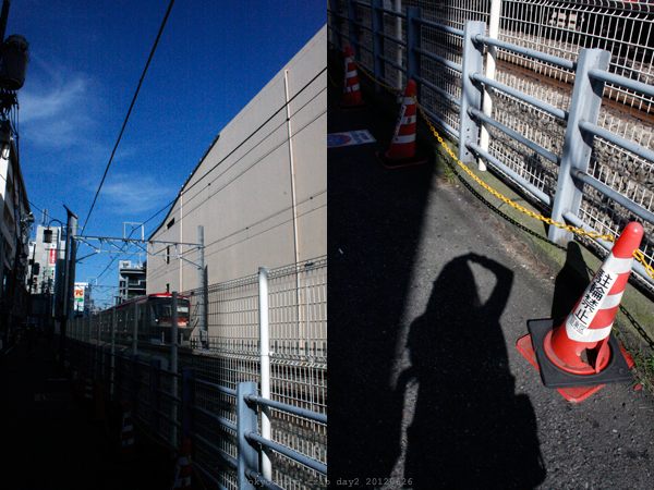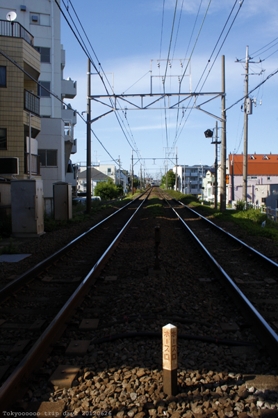 跟電車超近的看得我好感動XD 而且天氣不是一般的好,低樓層的房屋配上藍天真的好漂亮