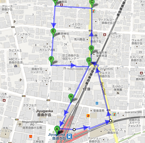 終於忍不住拿地圖出來看,不小心就發現自己來到了自由が丘地標的位置